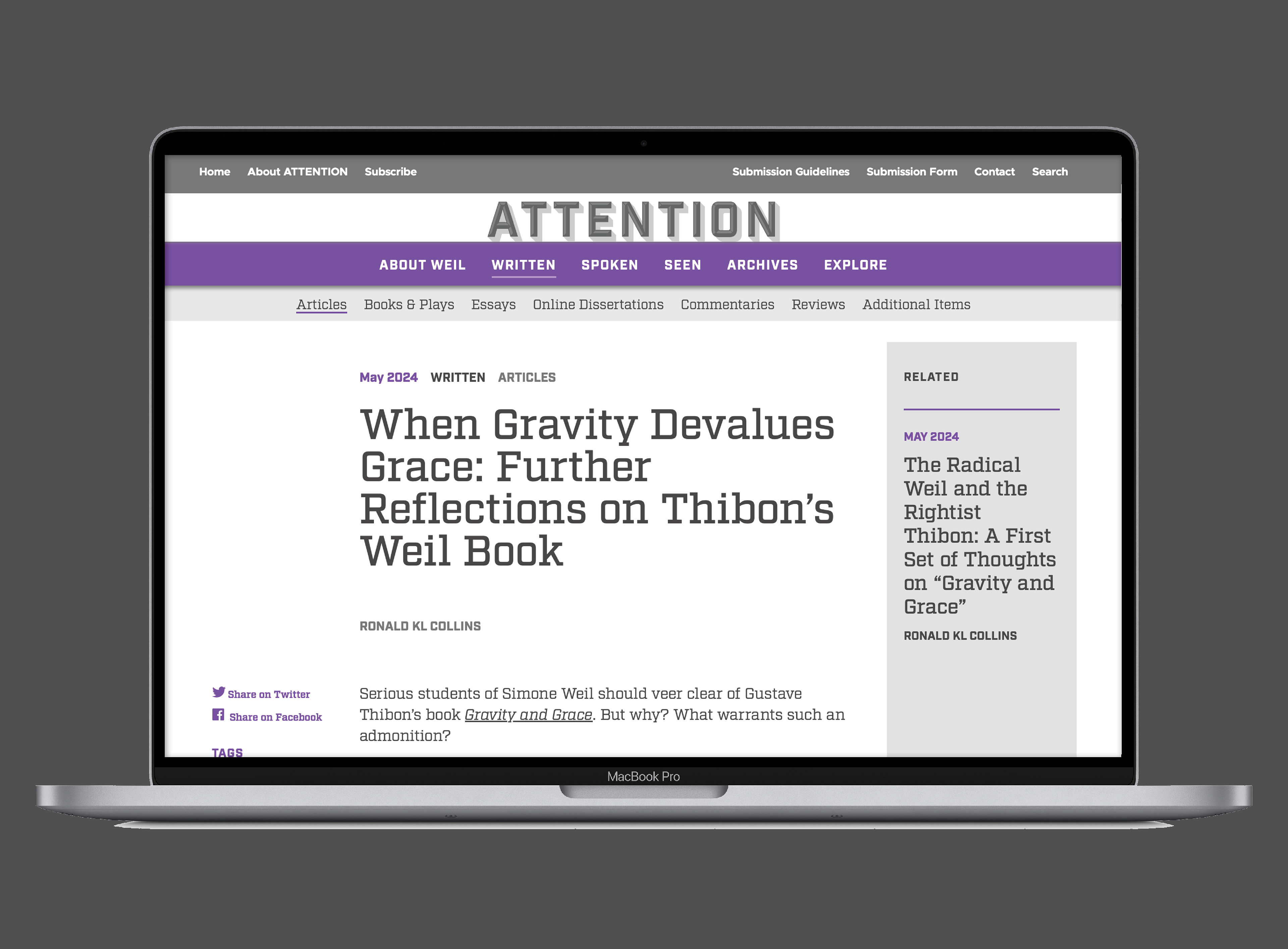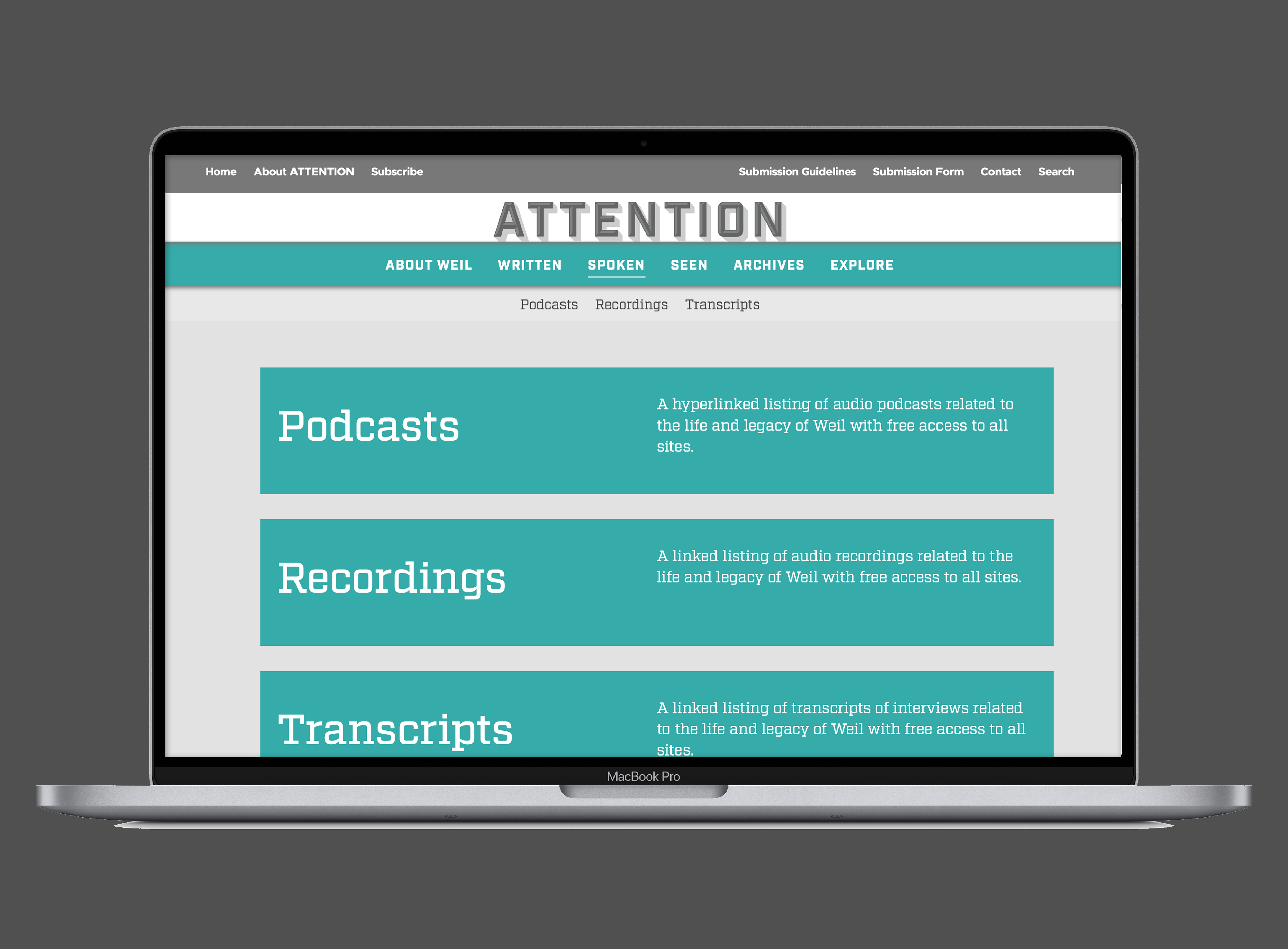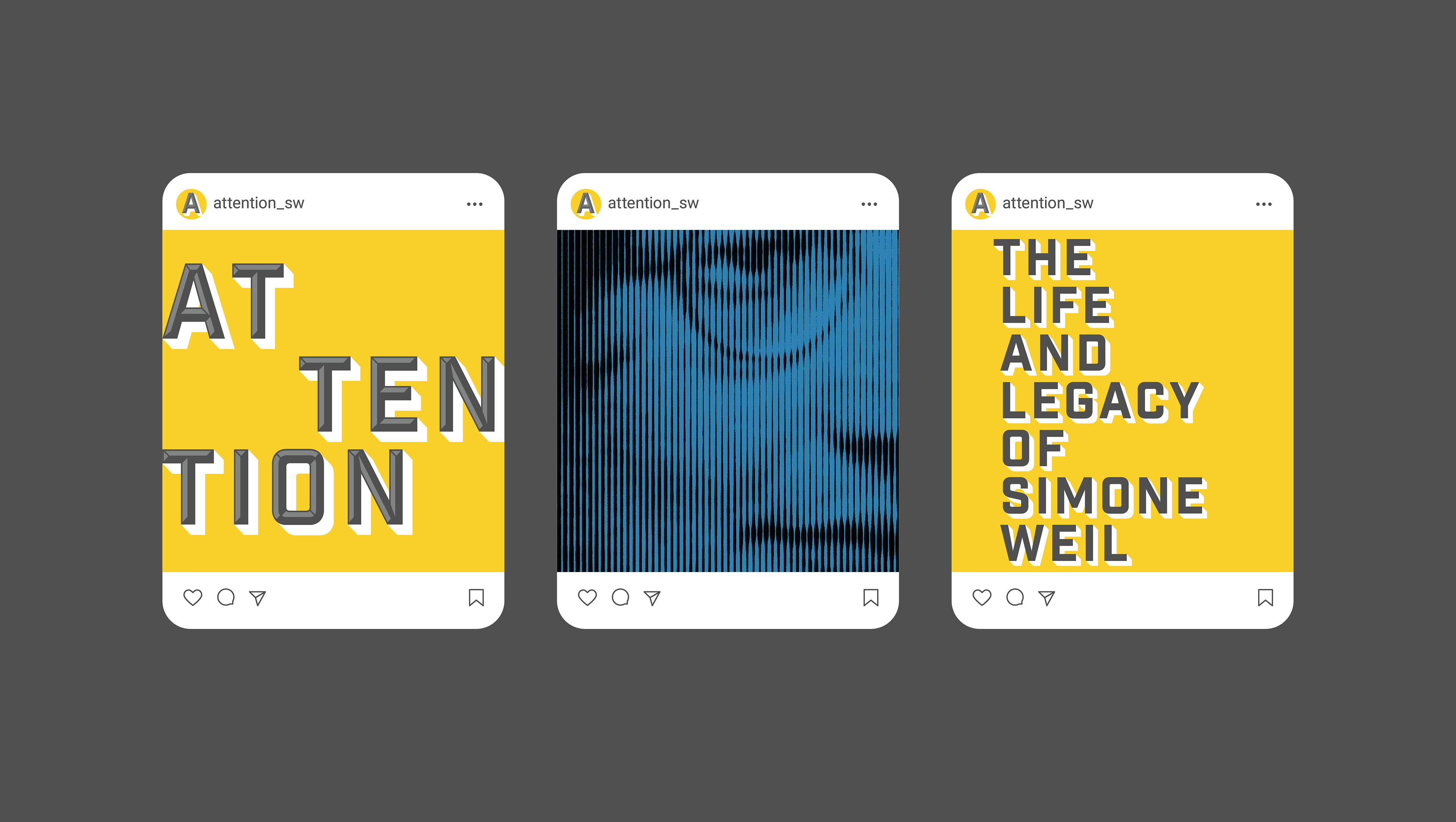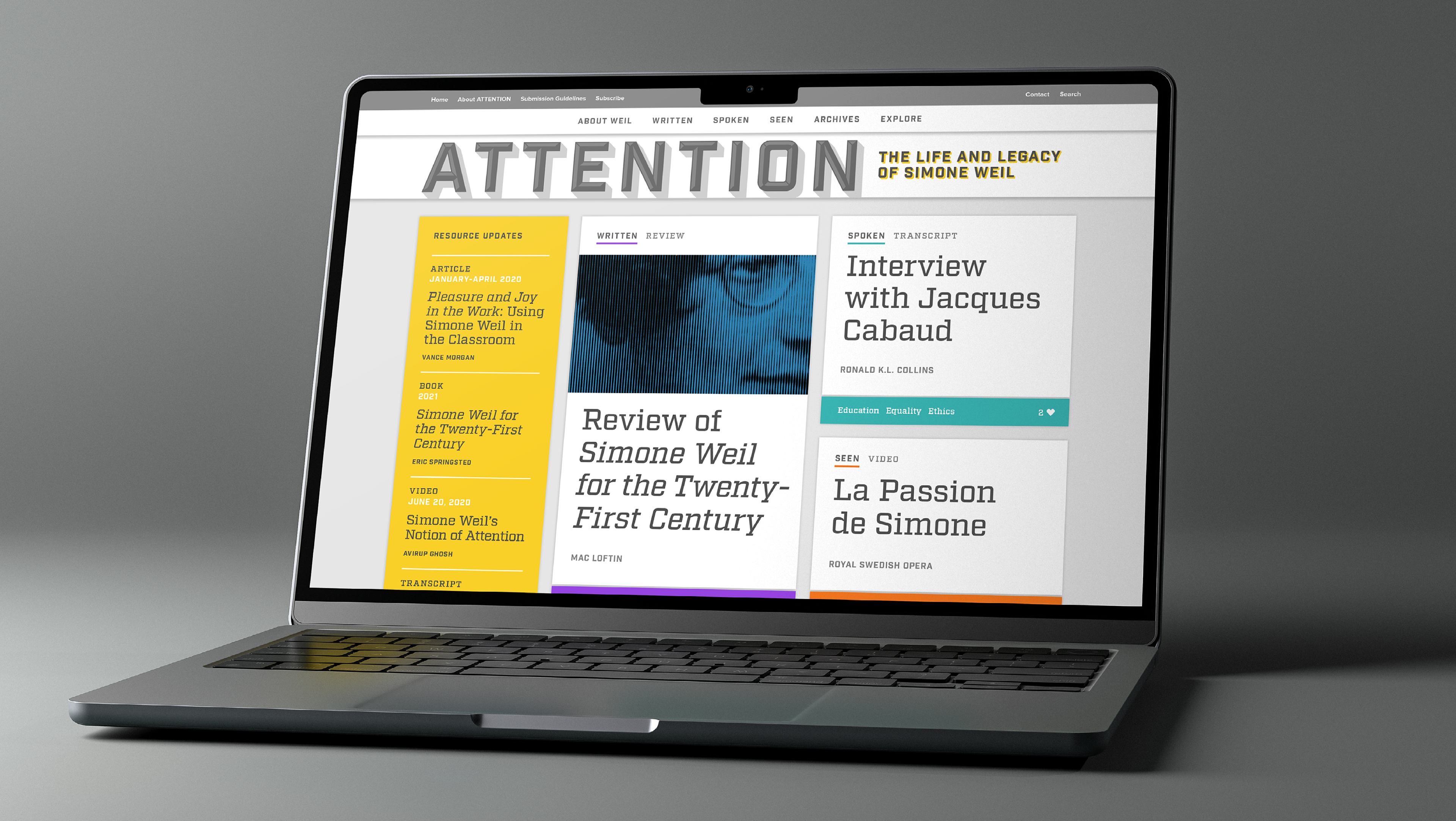 Branding and web design for the launch of a database site consisting of an ongoing collection of Simone Weil work highlighting her life and manner of death—both characterized by attention—and her legacy and influence on contemporary writers and issues.