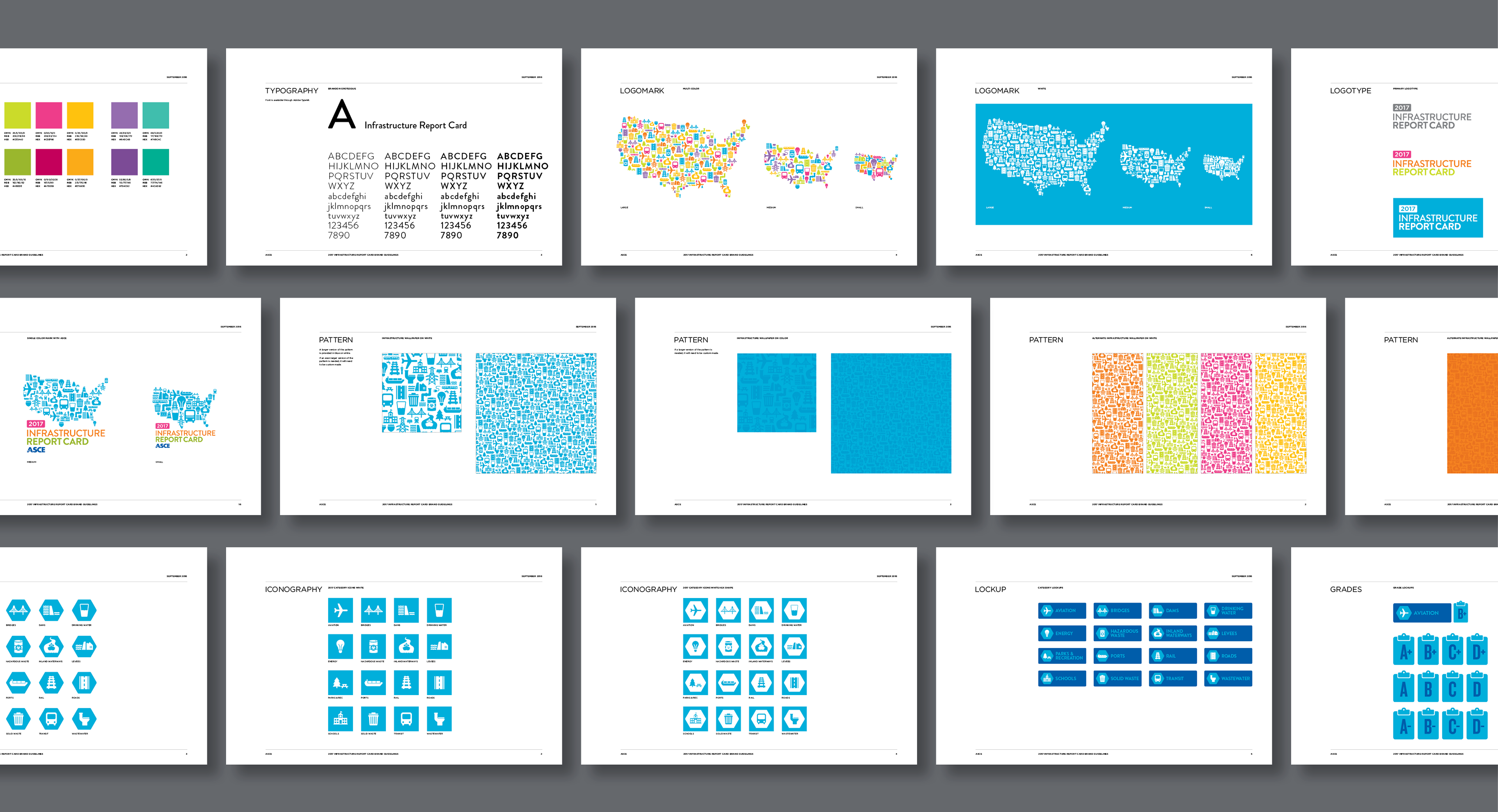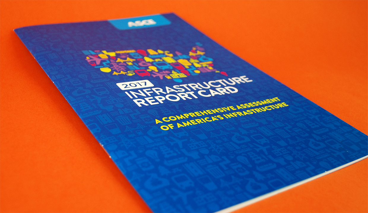 A rebrand of the Report Card for America’s Infrastructure including bold typography and colorful iconography sets the American Society of Civil Engineers message apart from the typical information bombarding policy-makers daily.