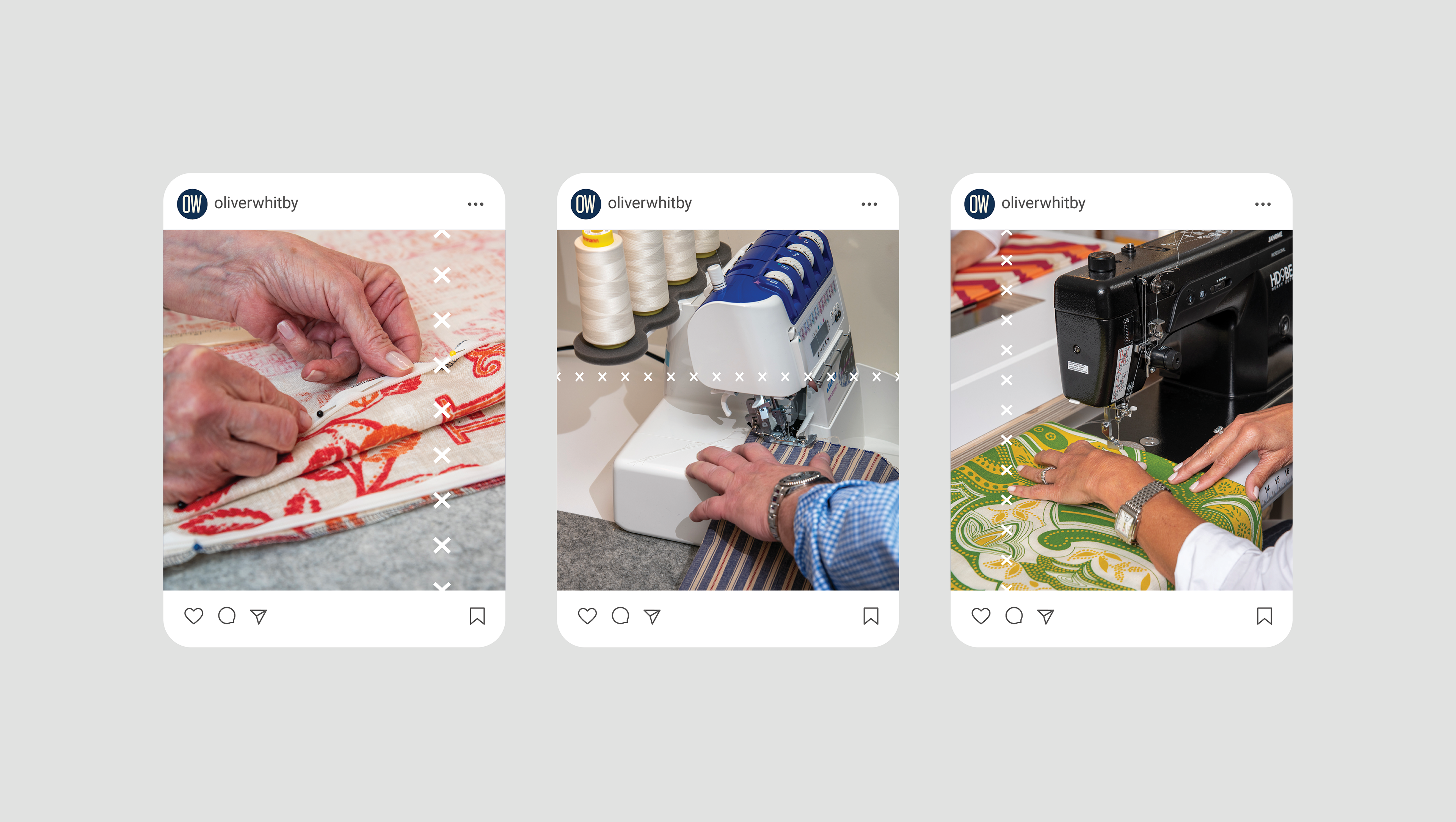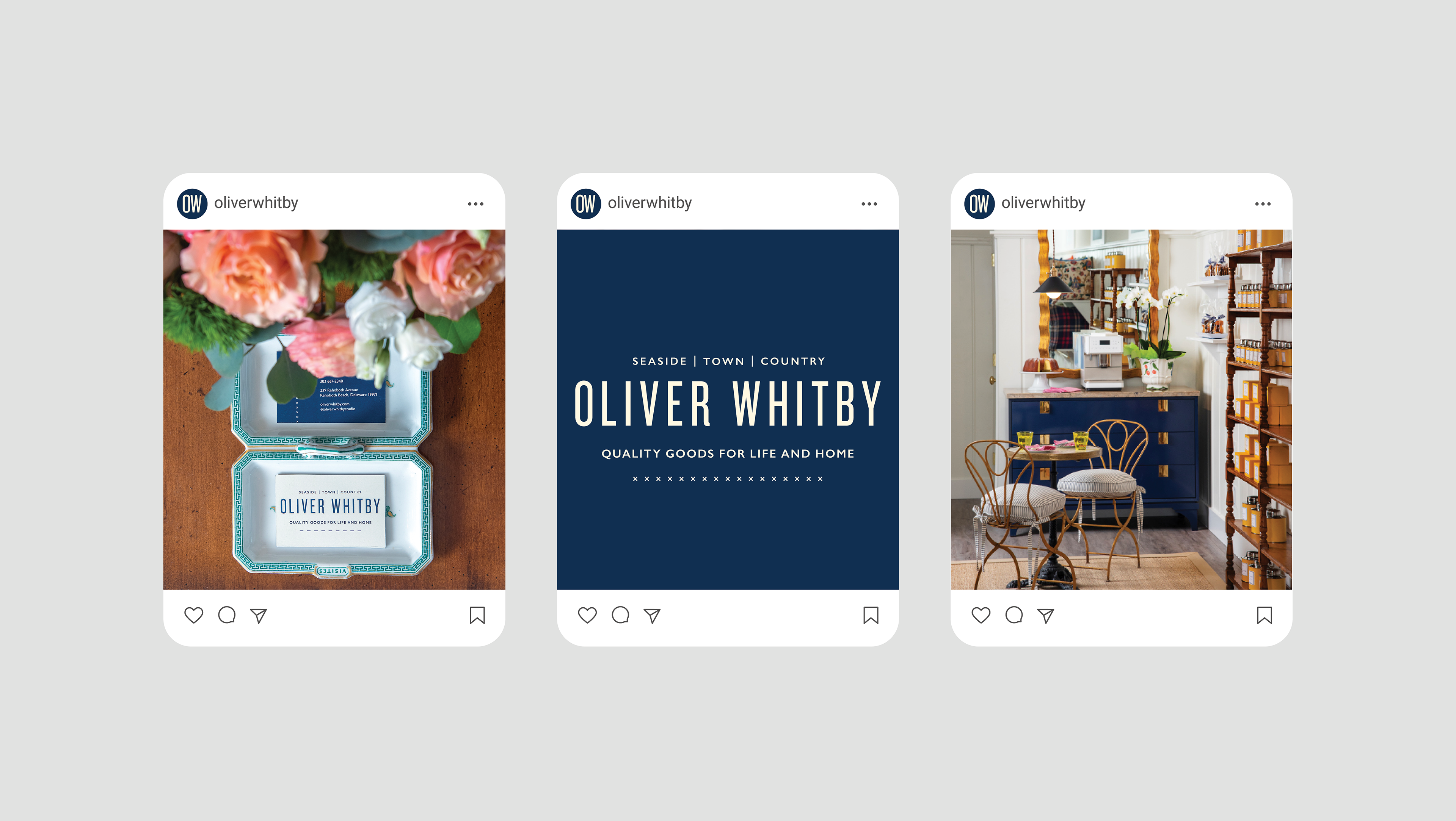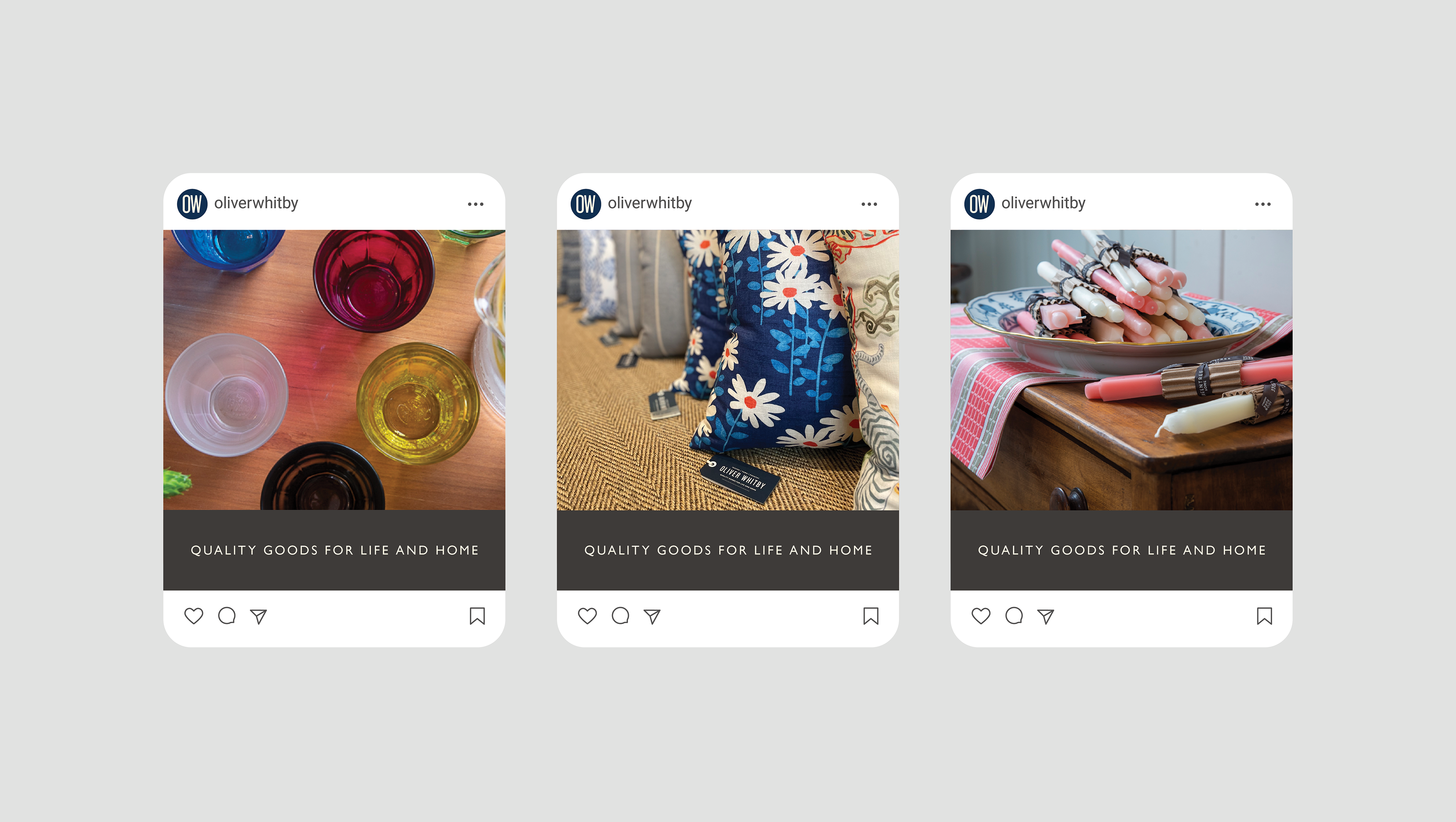 Overall brand development for Oliver Whitby, a boutique based on the creation of unique, handmade cushions as well as carefully selected items, for their provenance as the finest of their kind and their limited availability in other retail establishments.